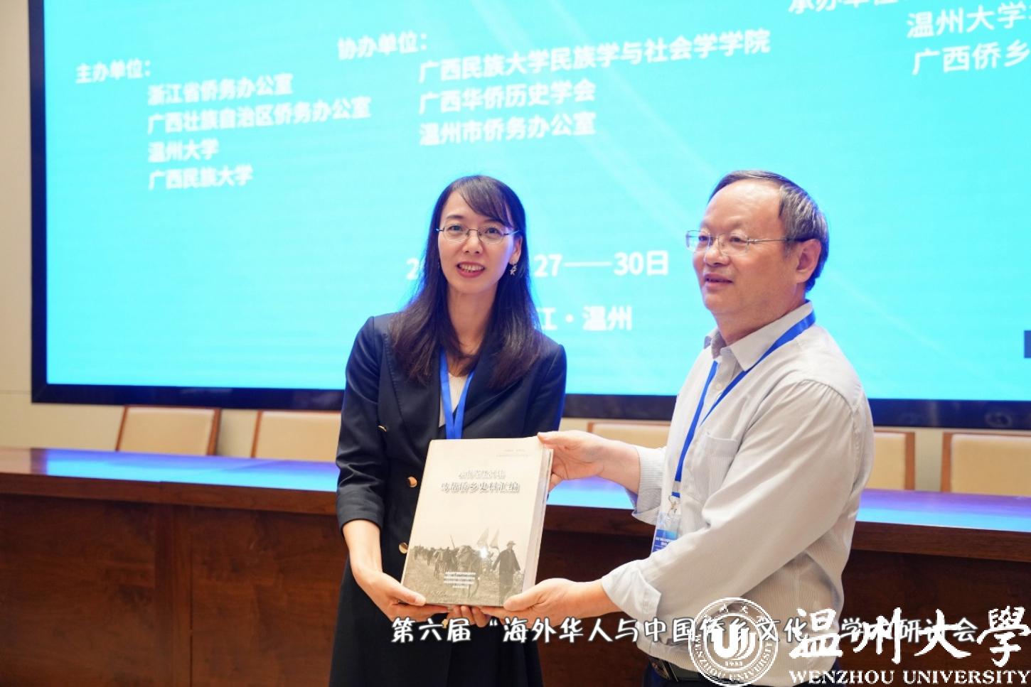 红河学院/云南侨乡文化研究中心主任何作庆教授向杏吧 华侨学院赠送最新研究成果。