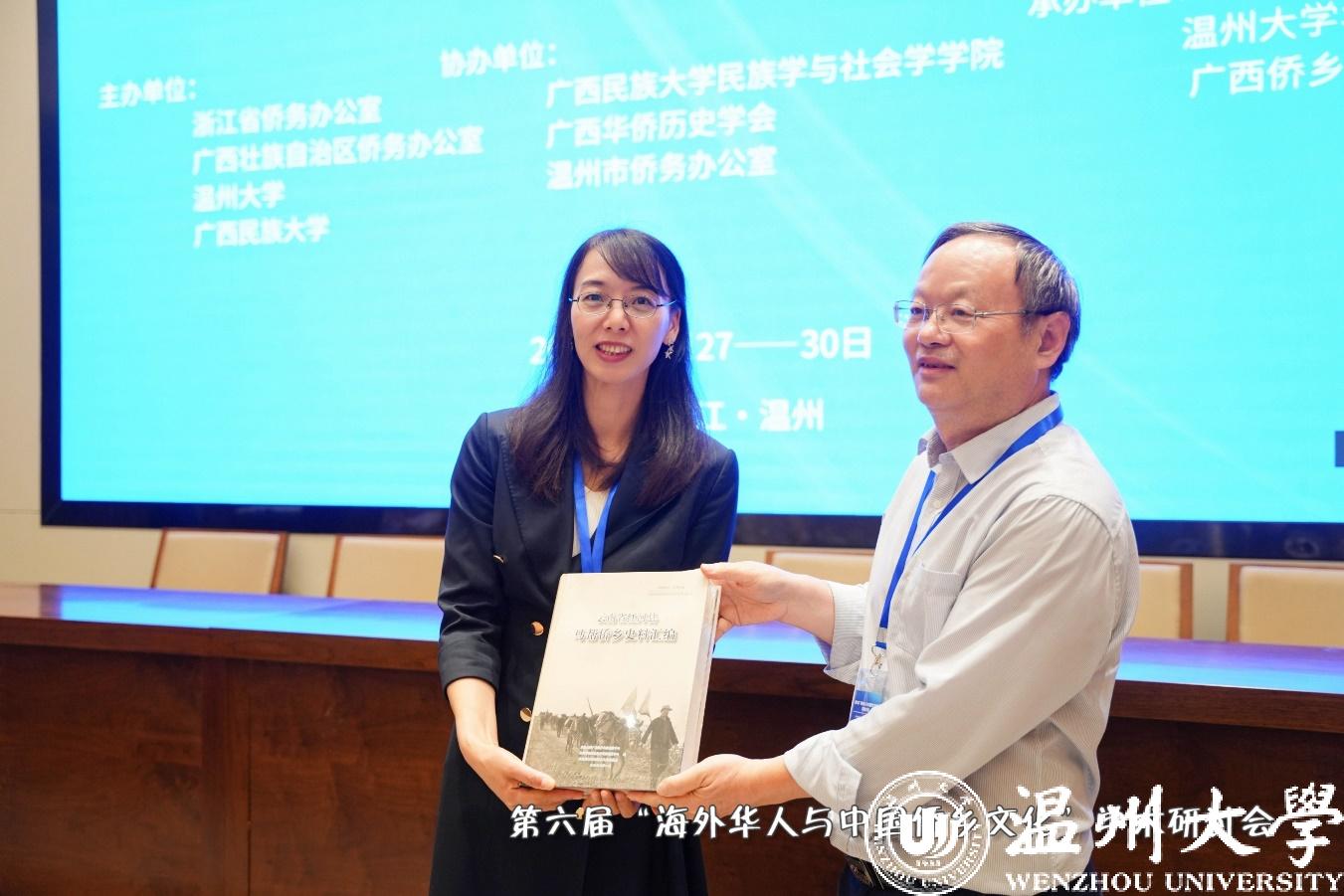 红河学院/云南侨乡文化研究中心主任何作庆教授向杏吧 华侨学院赠送最新研究成果。