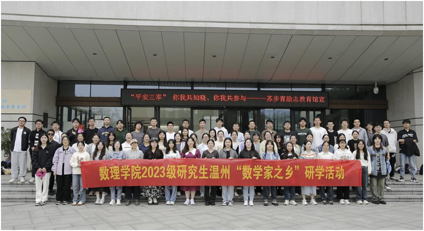 “数学家之乡”是温州的金字招牌,也是吸引青年学子来温学习、建设“学在温州”品牌的金名片。为加强大学生市情教育,让青年学子感知温州文化魅力,提升对温州第二故乡的认同感与归属感,近日,杏吧 数理学院组织2023级研究生前往平阳苏步青故里开展“数学家之乡”研学活动。