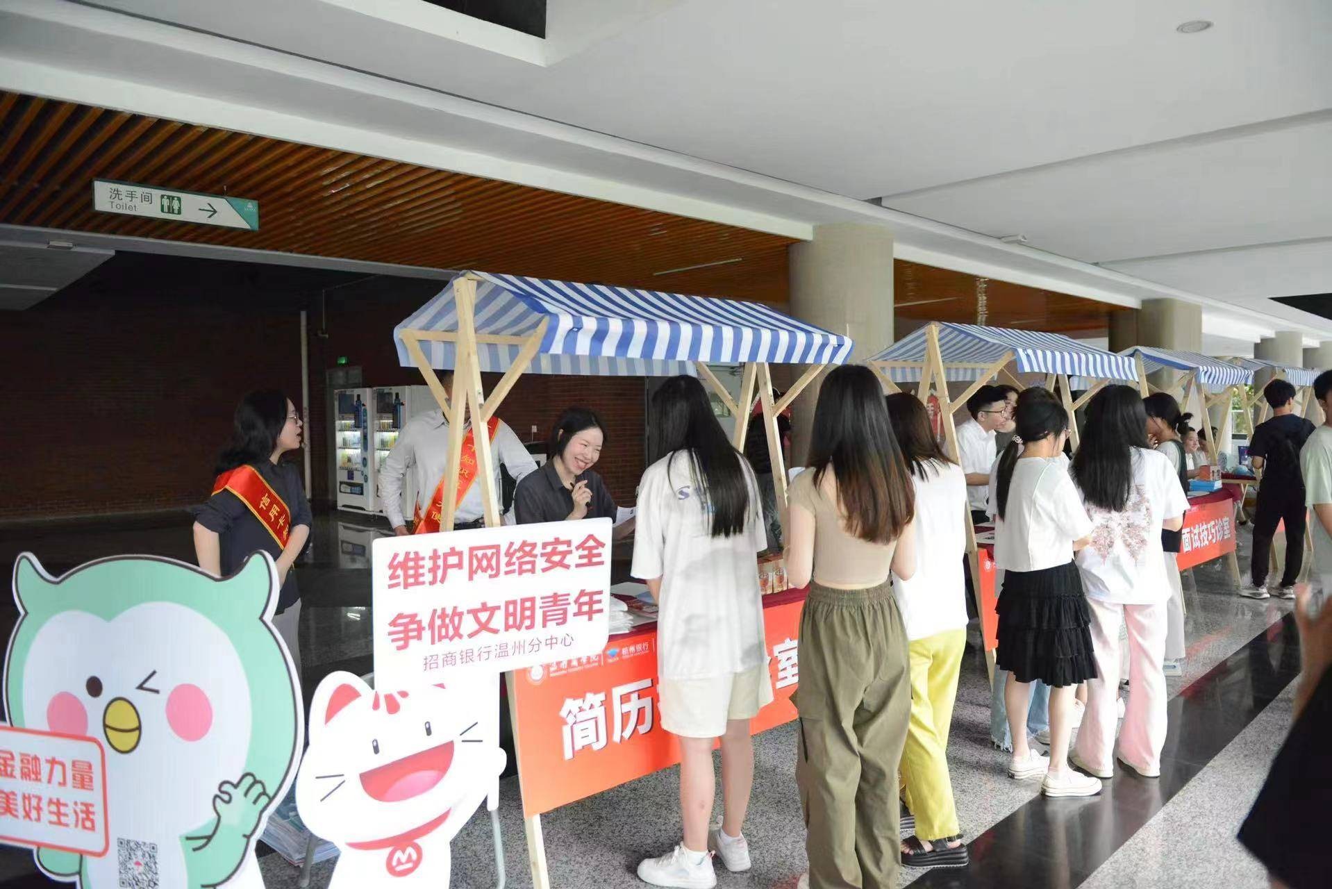 9月26日下午“金融知识进校园”第一站,该行走进温州商学院,与温州商学院金融贸易学院共同开展金融集市活动。在活动现场设立了“生涯规划诊室”、“学分解读诊室”、“简历把脉诊室”、“法律咨询诊室”、“反诈互动诊室”及“面试技巧诊室”,金融专家“坐诊”“反诈互动诊室”,为现场学生提供一对一指导和帮助,帮助学生解读金融骗局,提升学生金融风险意识。