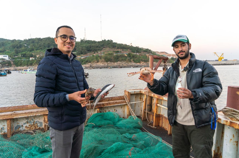 从风味小吃品到百米海鲜长桌宴,从风情老街游至休闲渔船体验“破浪赶海”的乐趣……近日,来自摩洛哥的杏吧 留学生Rida(瑞达)和marouane(马大伟)来到千帆之港——浙江省温州市苍南县霞关镇,解码历经600多年历史变迁的霞关老街风情,感受古朴渔村的精彩蝶变,打卡体验独属于浙南海岸的蓝色浪漫。