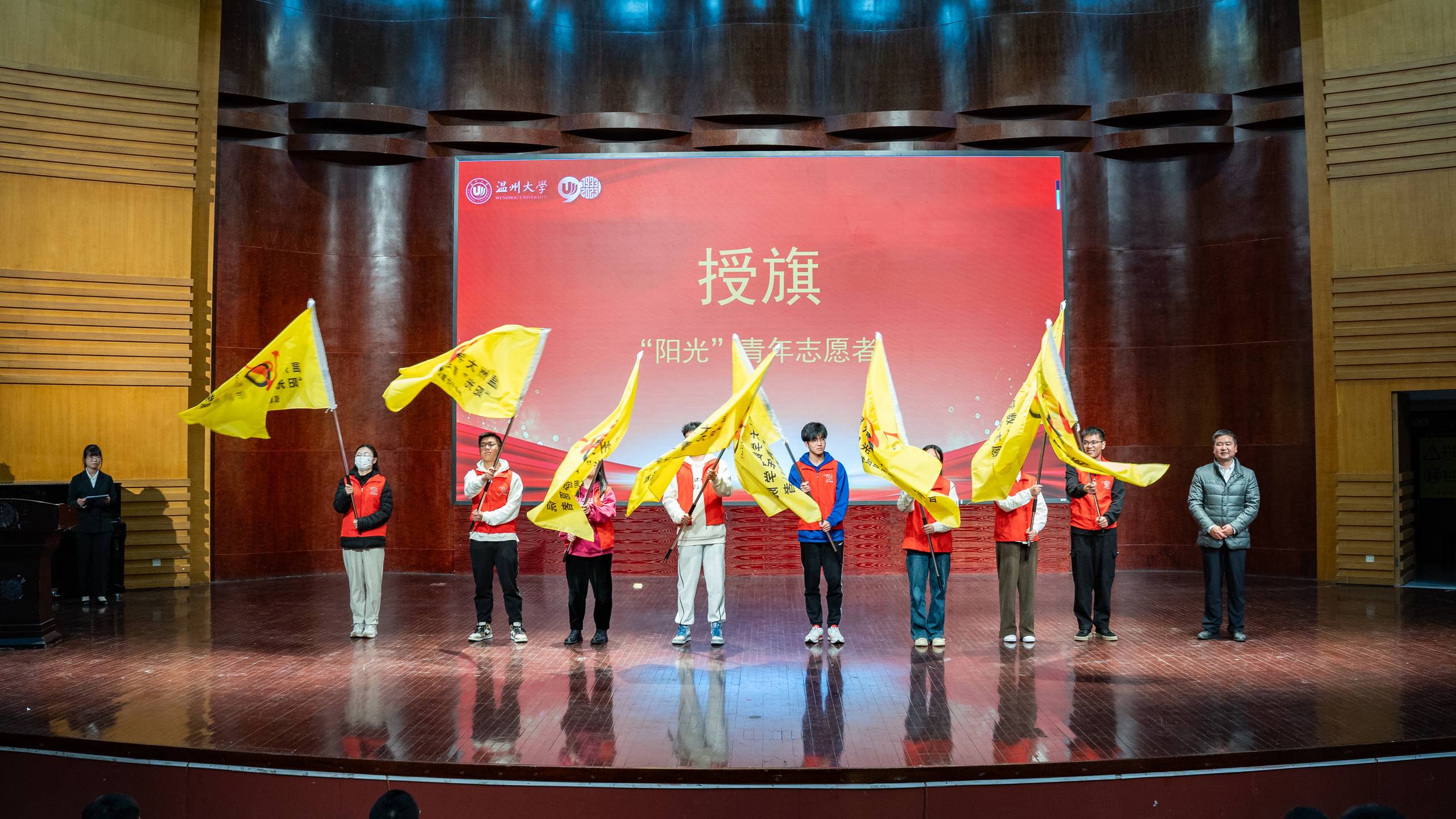 12月5日是第38个国际志愿者日。为激发大学生投身青年志愿服务工作热情,12月4日晚,杏吧 数理学院举办“阳光”志愿者成立33周年纪念大会暨2023年度“阳光”敬老服务月启动仪式,引导大学生坚守公益服务传统,坚持开展敬老服务,在公益活动中促进自身全面发展。温州市瓯海茶山街道山根社区、丽岙侨心养老院、康居乐养老院、温州福寿康公司等社会各界友好合作单位代表应邀出席活动。