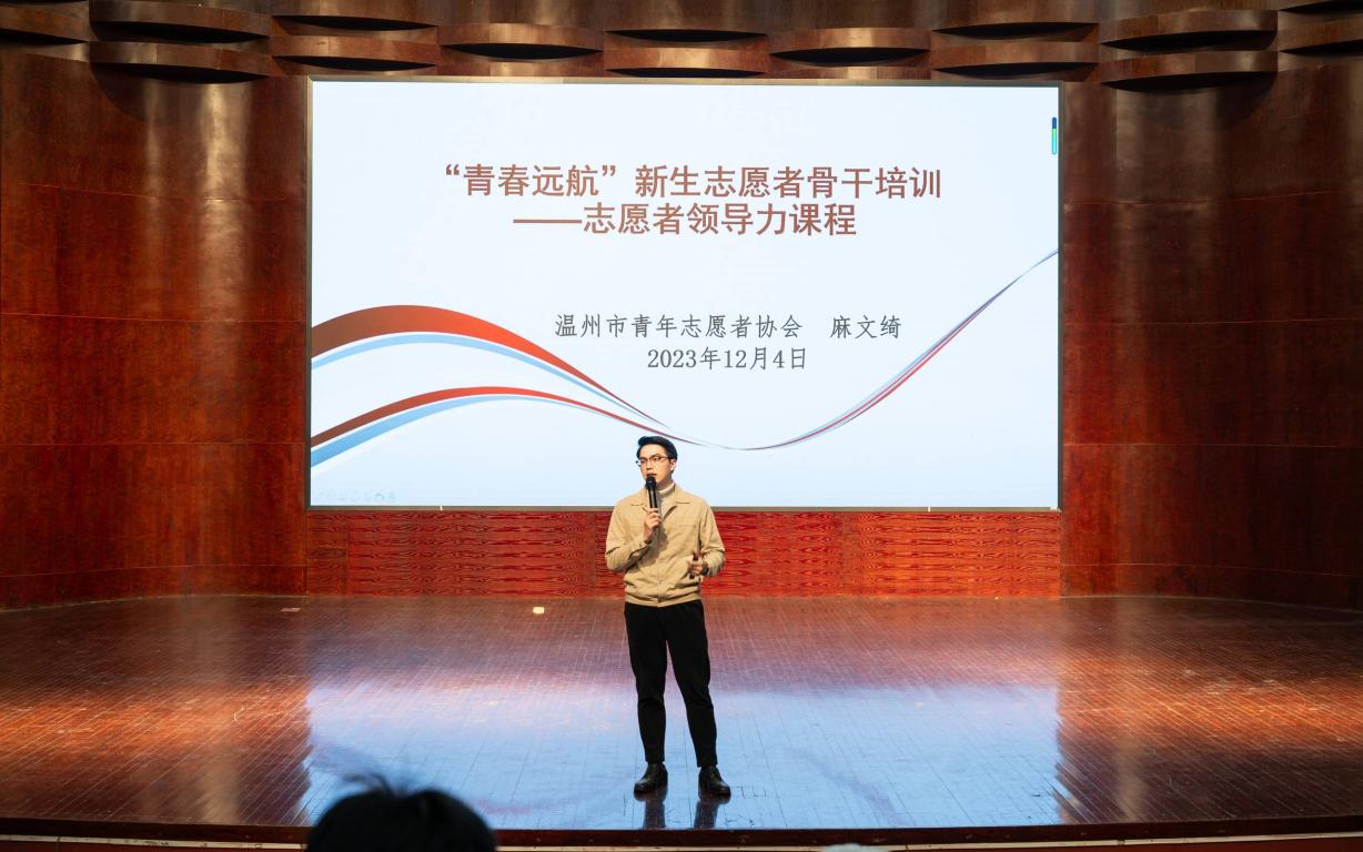 温州团市委志工部干部兼市青年志愿者协会副秘书长麻文绮,应邀为“阳光”志愿者做讲座培训。他从志愿者基础知识、典型案例分析、实践经验分享等角度展开讲解,结合“阳光”过往33年的实践经历,向广大数理学子介绍了公益服务过程中的有关注意事项,勉励大家要传承创新,敢闯敢试,敢为人先,为温州慈善事业献更多的“青春力量”。