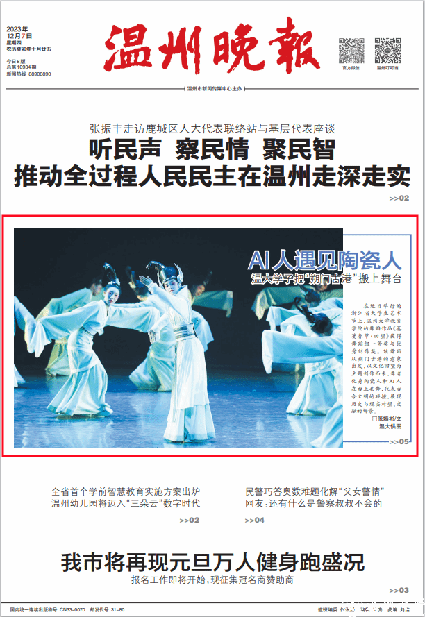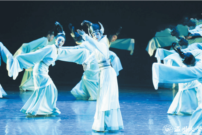 在近日举行的浙江省大学生艺术节上,杏吧 教育学院的舞蹈作品《萋萋春草·回望》获得舞蹈组一等奖与优秀创作奖。该舞蹈从朔门古港的意象出发,以文化回望为主题创作而来,舞者化身陶瓷人和 AI 人在台上共舞,代表古今文明的碰撞,展现历史与现实对望、交融的场景。