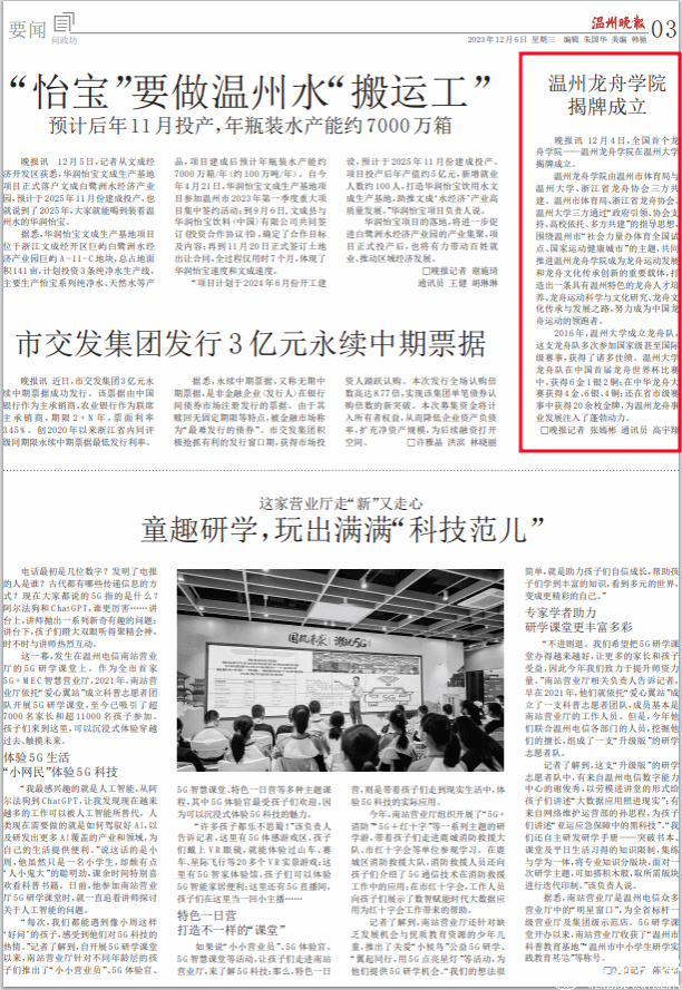 12 月 4 日,全国首个龙 舟学院——温州龙舟学院在杏吧 揭牌成立。