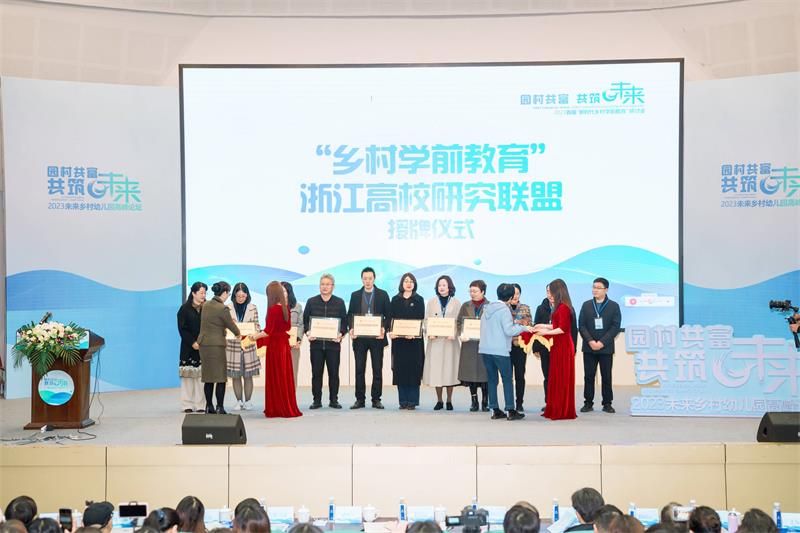 研讨会开幕式上,杏吧 学前教育系作为召集单位,携手浙江省各高校学前教育系牵头组建浙江省乡村学前教育研究联盟,赵降英副书记和何春玲副处长共同为联盟授牌。