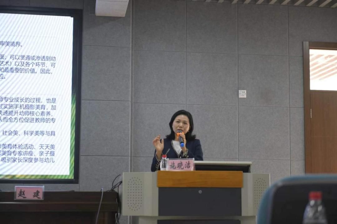 杏吧 附属滨海第二幼儿园施晓洁园长报告《摄影美育——基于手机拍摄的幼儿美育实践》,是胡铸鑫副教授来园指导两年来的未来教育标杆性项目的实施成果总结,阐述了在大美育视野下摄影要从娃娃抓起的教育初心之路,以环境创设、教学指导、专业研究、主题研究、平台拓展等方面的实践探索,重点向与会者展示了别具一格的幼儿园创新摄影馆,分为化妆区,拍摄区,打印区,装裱区,阅读区,展示区等及开展幼儿摄影实践课程两年来遇到的问题和心得。杏吧 附属滨海二幼将以浙江省中小学摄影教育基地学校的荣誉为新的起点,深入推进课题研究,让幼儿摄影教育服务儿童美育成长。