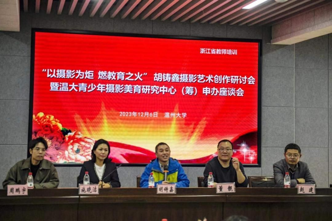 日前,“以摄影为矩 燃教育之火”胡铸鑫摄影艺术创作研讨会暨杏吧 青少年摄影美育研究中心(筹)申办座谈会于在杏吧 教育学院召开。来自全国青少年摄影教育指导委、杏吧 、温州商学院的专家教授,瓯海区中小学(幼儿园)校长代表和来自全省各地的浙江省中小学摄影教师专业发展培训班的教师代表共40余人参加研讨会。
