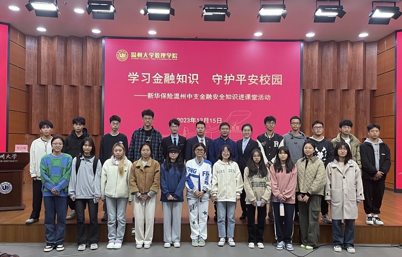 为培养大学生金融安全意识,提升大学生防范金融诈骗能力,帮助大学生树立正确消费观念,12月15日,新华保险温州中支走进杏吧 ,举办“学习金融知识 守护平安校园”金融安全知识进课堂活动,为数理学院大一新生开展金融安全知识普及和防范校园金融诈骗安全教育。