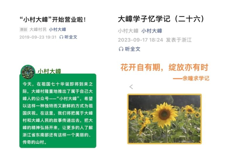 乡村耕读文明之“哲”思。昔日大嶂只出放牛娃,今天大嶂盛产读书郎,50多名大嶂学子中,有的就读北大、浙大、中国政法、牛津大学、霍普金斯大学、雪城大学等高校,“小村大嶂”公众号“大嶂学子忆学记”专栏已陆续推送二十六期。