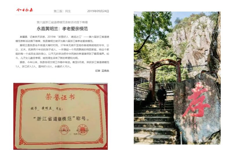 大嶂的五龍观、追熊亭让五子追熊救母的美谈在当地广为流传,哲春先生提出以“孝”为魂的大嶂文化建设,如今的大嶂村“孝老爱亲”蔚成乡风,形成以浙江省道德模范黄明兰为代表的“孝顺”群体。