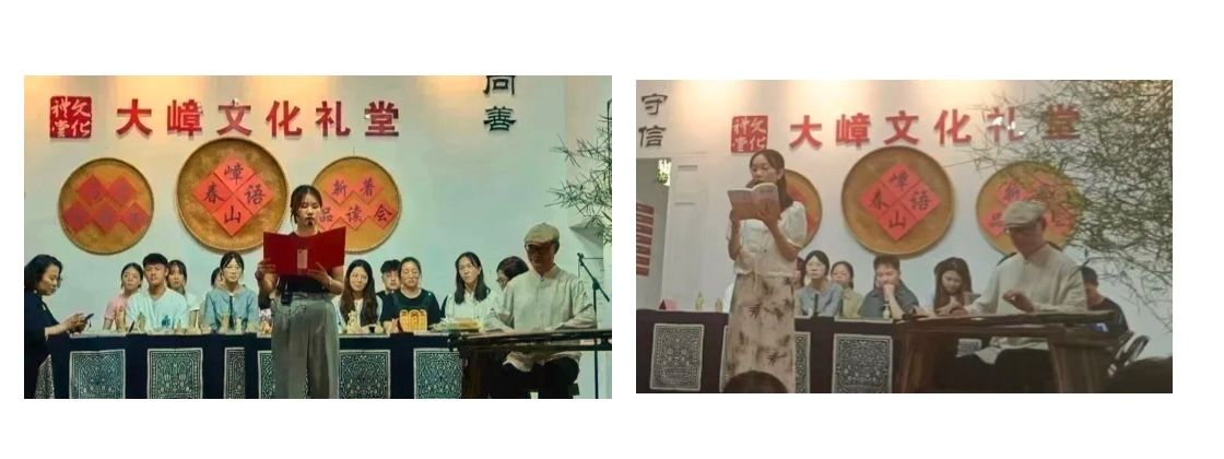 《嶂山春语》品读环节,来自河南的洛阳作协副主席王鼎三,来自宁波和安徽的作家落樱、傅建国,还有来自河北的我,和大嶂学子们分享了《嶂山春语》读后感,简短的分享会,成了几代人同桌的南北中国文化“聚餐”。