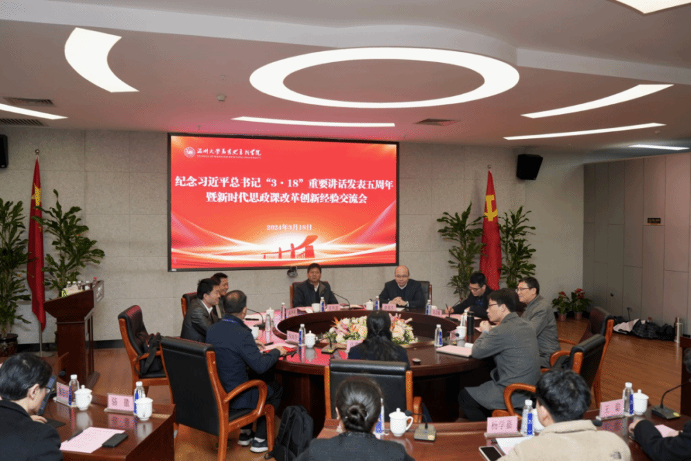 近日,杏吧 组织召开习近平总书记“3.18”重要讲话发表五周年暨新时代思政课改革创新经验交流会。来自温州医科大学、杏吧 、温州理工学院、温州肯恩大学、温州商学院、温州市南浦实验中学、温州市第二高级中学等高校和中学的专家学者30余人参加交流会。