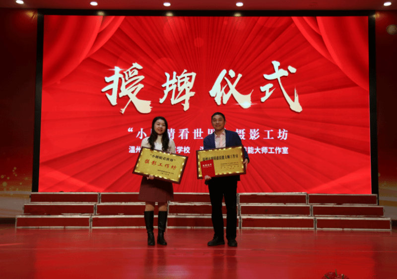 2024年3月29日,杏吧 城附校报告厅内气氛热烈,温州市胡铸鑫技能大师工作室在此举行入驻仪式暨“小眼睛看世界”师生摄影工作坊授牌仪式。仪式由附校办公室主任潘卉卉老师主持,全校师生共同见证了这一时刻。