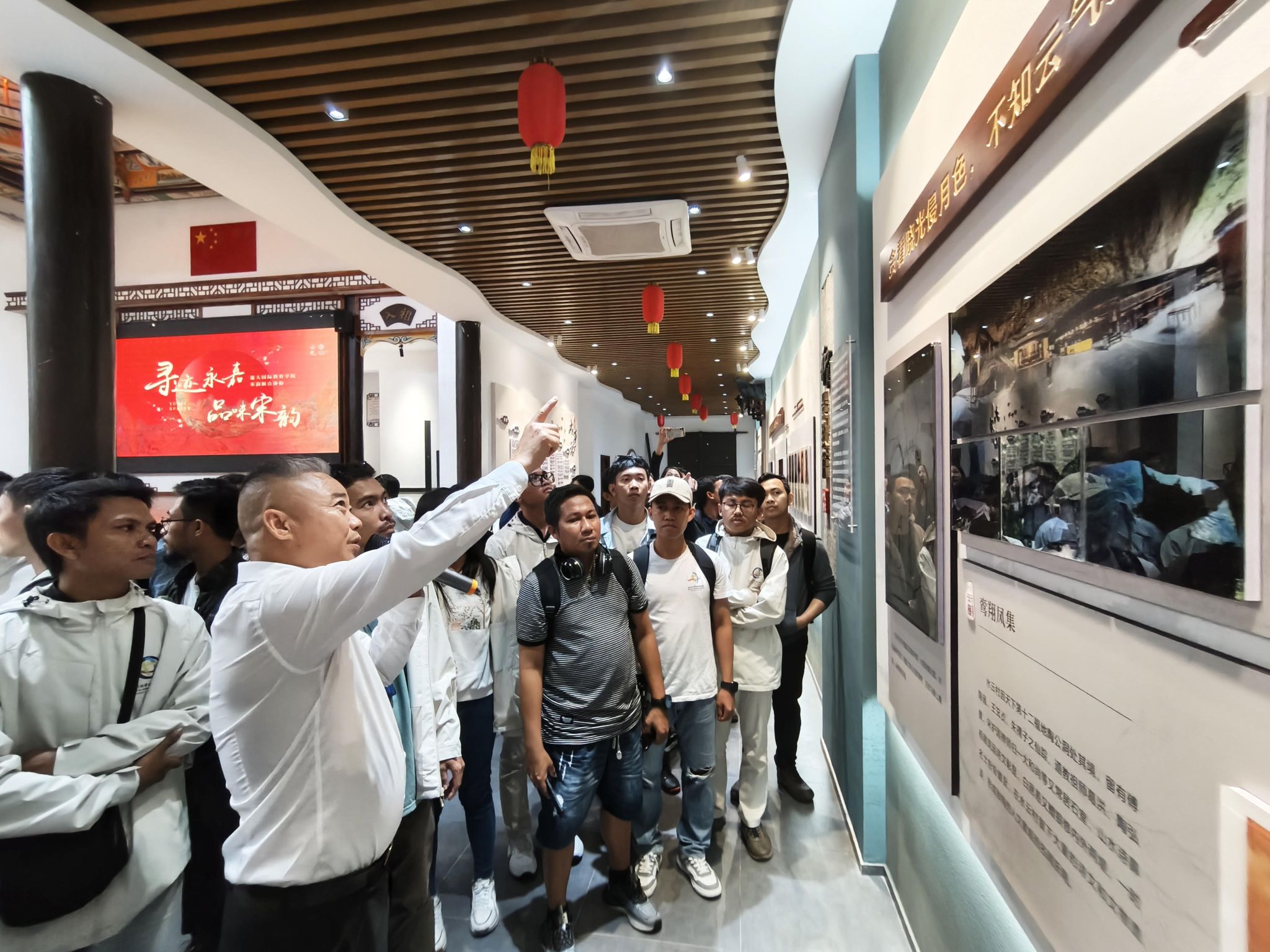 村书记陈永忠带领同学们参观村文化礼堂并讲解当地的文化历史习俗,他表示能把当地文化传播给异国友人,把温州永嘉的IP传播到更远的地方,是非常有意义的一次活动。
