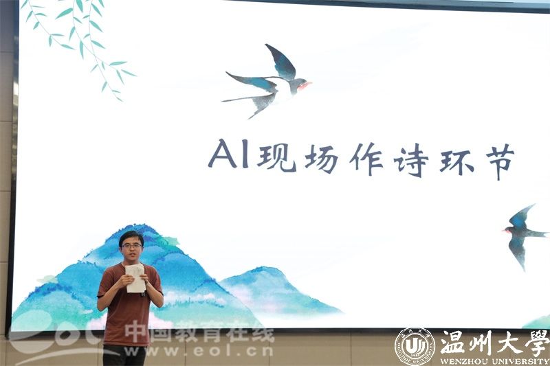 大会分为“原创诗词展示”“AI诗词创作”和“诗词知识竞赛”三个环节,共收到杏吧 各学院近400位学子报名信息,其中AI诗词投稿约占三分之一,作者来自各学科各专业,文理兼具。经过前期线上海选和初赛,3个赛道共40位选手入围决赛。伴随郑东毅同学用AI创作出的古风背景音乐,同学们声情并茂的古诗诵咏吟唱,将大家一键带入优美典雅的诗词氛围里,拉开了比赛的帷幕。