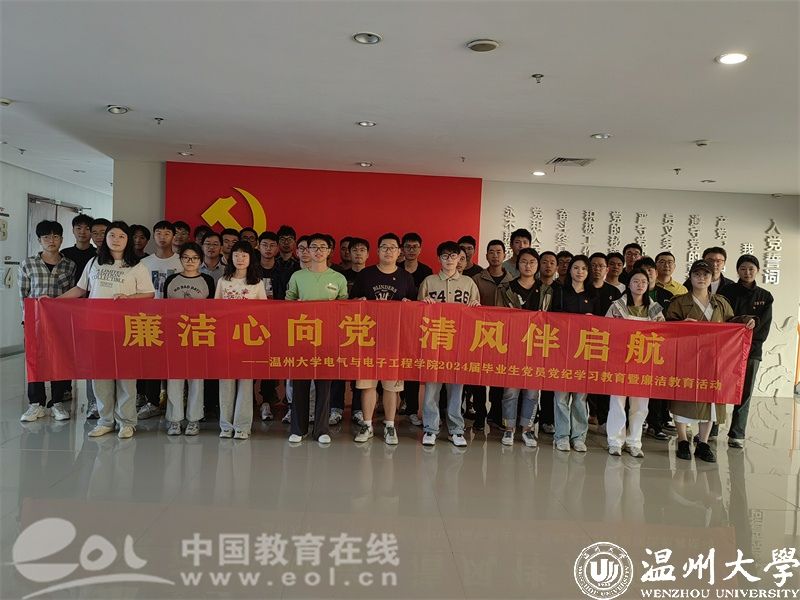 5月10日下午,在毕业生们即将踏上人生新的征程之际,杏吧 电气与电子工程学院党委组织毕业生党员赴温州市瓯海区廉政教育基地开展毕业生党员党纪学习教育暨廉洁教育主题党日活动,旨在引导青年学生坚定理想信念,增强廉洁意识,扎实走好迈向社会的第一步。