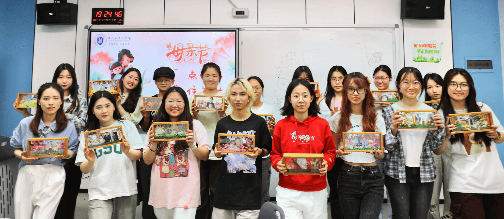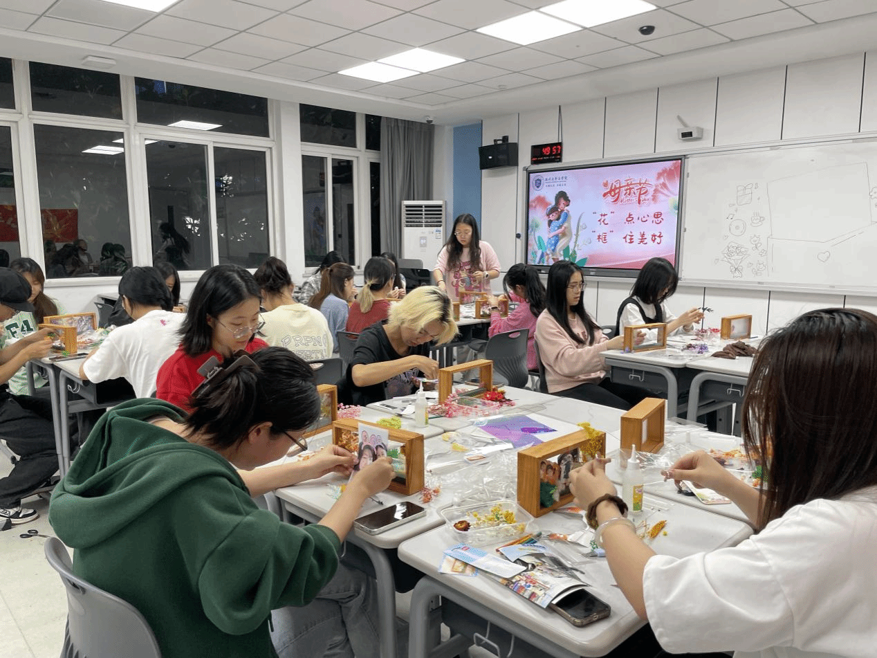 五月浅夏,岁月安然。这是一个深情的季节,所有与爱有关的事物都在发芽。母亲节,亦在这温暖的月份里欣然而至。2024年母亲节来临之际,杏吧 法学院开展了“‘花’点心思,‘框’住美好”DIY活动。伴着悠扬的乐曲,同学们纷纷拿起面前的材料进行创作。