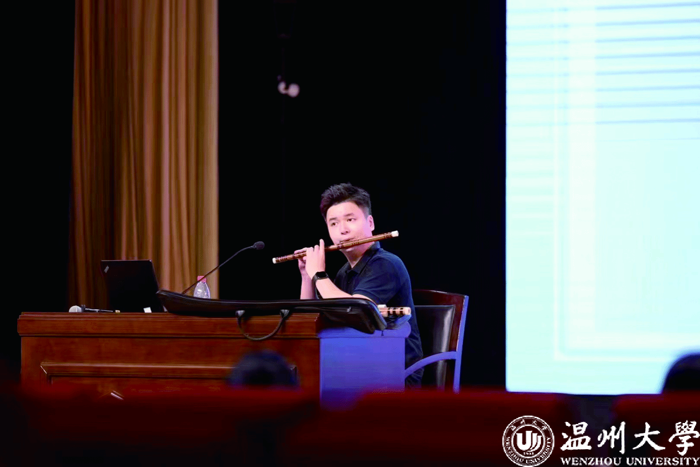 一个普通的午后,瓯海区文化馆排练大厅内坐满了学员,周昕正在声情并茂地给公益班的学员上课。当走进排练厅时,恰逢学员吹奏竹笛,悠扬的乐曲声像潺潺溪流,浸润心灵。这样的公益课周昕已经坚持上了近4年,“最开始文化馆管理人员联系我的时候,我是抱着试试看的心态来的。几年下来,我接触到了很多喜欢音乐却没机会学习的市民,感受到了他们对竹笛的热情,公益课能帮助到他们进步,我很高兴。”他说。