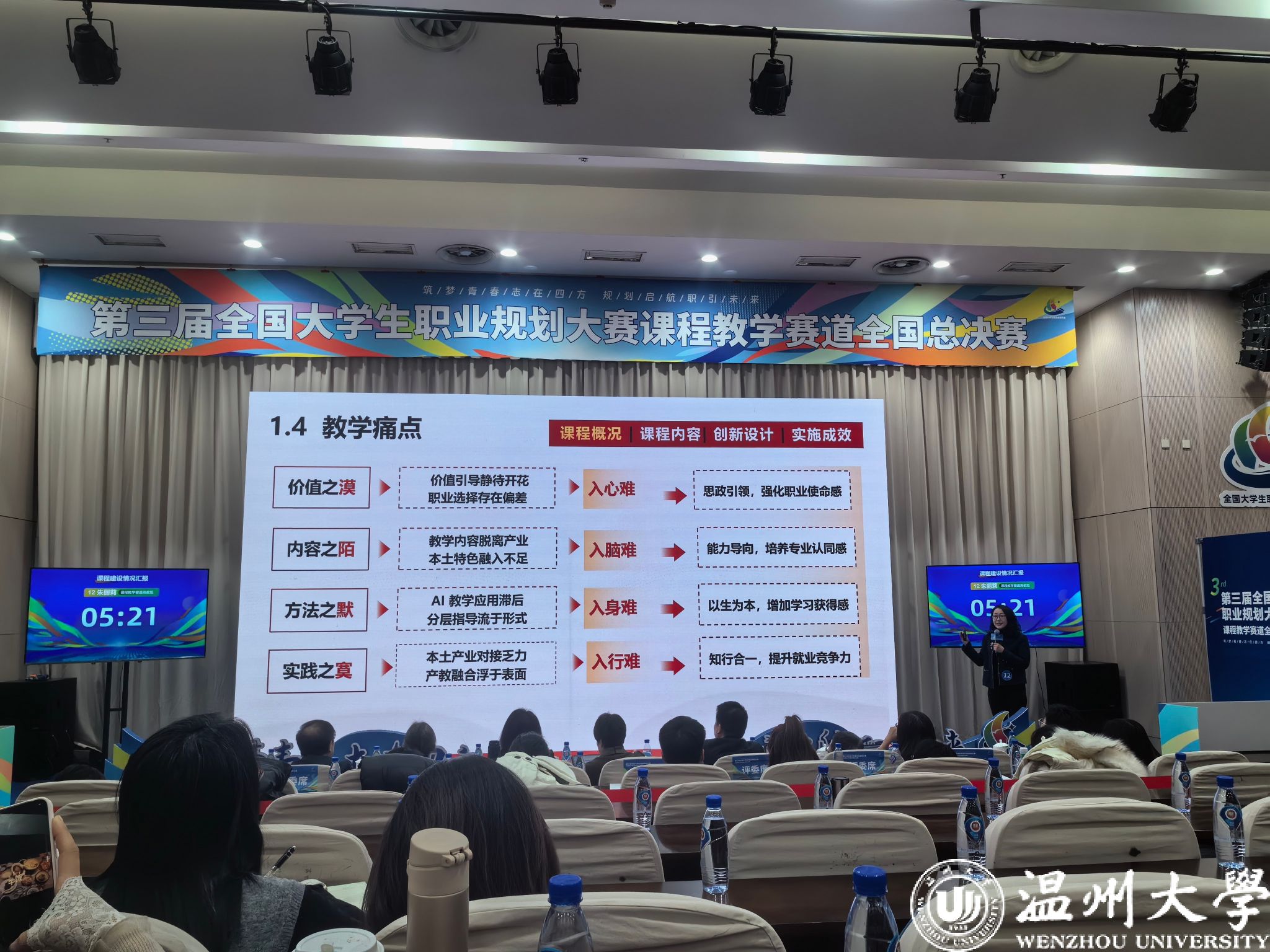 本次大赛重点考察大学生职业发展与就业指导类课程的建设质量与教学实效,涵盖课程设计、教学展示、互动应答等多维环节,全面评估课程改革成果与教师教学水平。