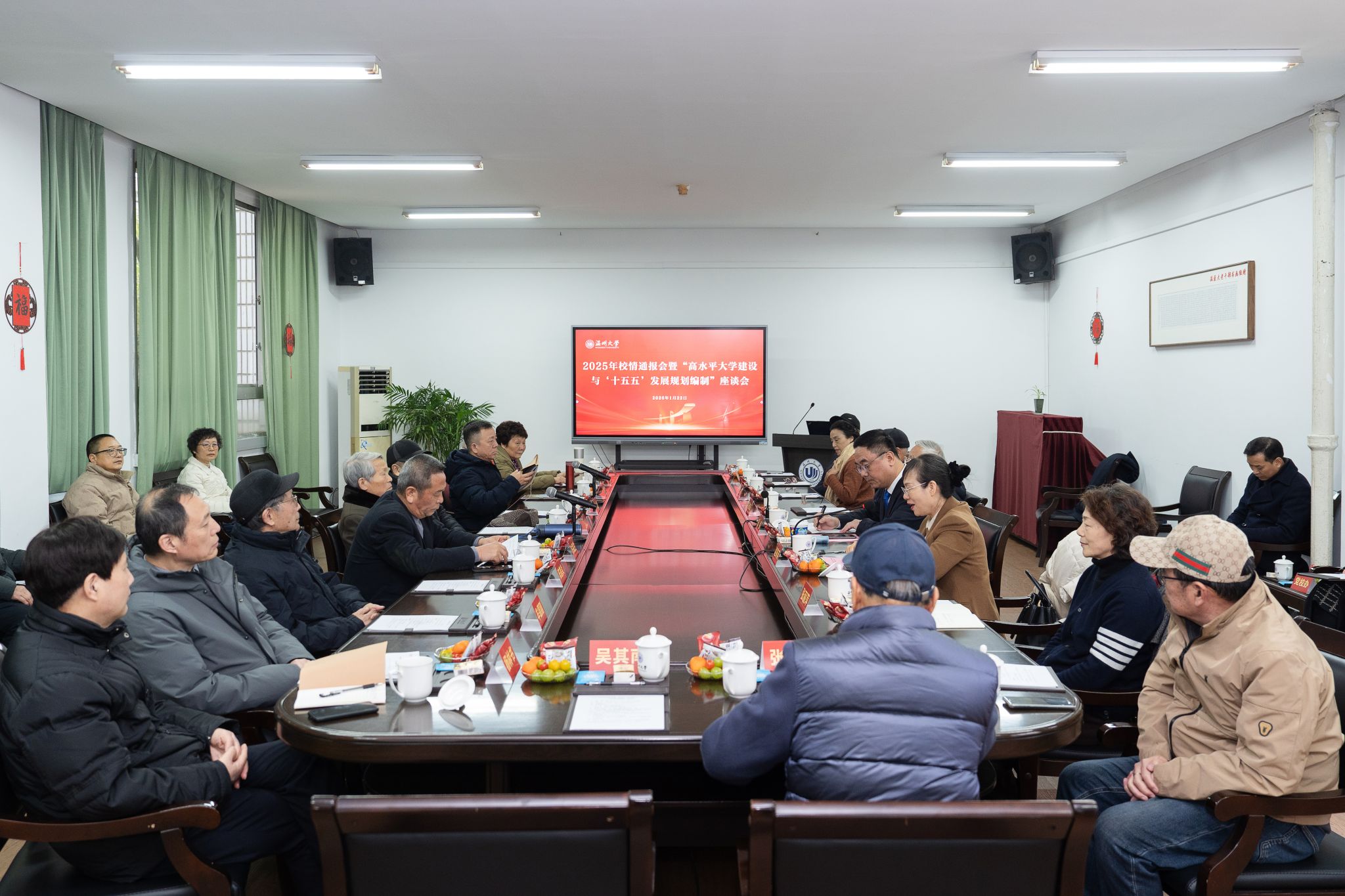 党委书记钱强围绕十个“聚焦”就2025年度学校发展情况向老领导、老同志们作通报:一是聚焦政治引领,党的建设全面加强;二是聚焦学科建设,发展动能持续增强;三是聚焦立德树人,教育教学行稳致远;四是聚焦人才引育,师资力量不断强化;五是聚焦科研创新,服务能级加速提升;六是聚焦校地共建,社会服务纵深推进;七是聚焦开放办学,国际影响不断扩大;八是聚焦文化铸魂,育人品牌更加响亮;九是聚焦师生为本,幸福指数持续攀升;十是聚焦强基固本,办学根基日益坚实。